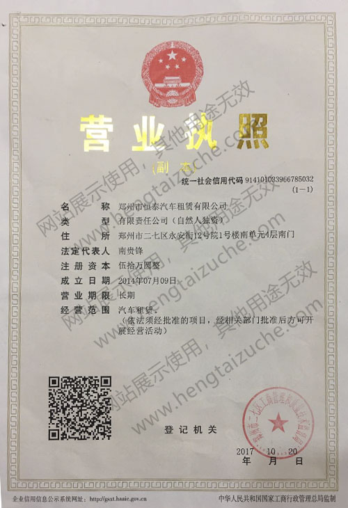 鄭州市恒泰汽車租賃有限公司結合國際、國內租賃行業的發展趨勢,制訂了詳細的發展戰略,高視野、高起點、高目標、高投入,面向高、中端長租客戶群體和廣大散租市場,致力于推動、引***行業的創新和發展。公司不斷地吸收、借鑒國外及國內同行的***管理理念、管理經驗,在經營機制、管理模式、租賃方式、服務項目等方面不斷創新,引導并滿足廣大客戶的不同需求。幾年來,形成并不斷的提升企業的核心競爭力。恒泰租車公司一直以務實的態度、中肯的價格、贏得客戶和企業對我們的高度忠誠度和信任感。我們用心的服務為我們積淀了一大批長期忠實的客戶群體,在行業內具有良好的信譽。恒泰租車公司擁有奔馳S600、別克商務7座、別克君越5座、奧迪A6L、豐田系列等高、中檔各類轎車、商務車、17-61座巴士等。公司的主要業務:長、中、短期的各種形式租車;個人和單位租車、公務、商務用車、企業班車、旅游租車、機場接送、會務會展租車、長途商務旅游租車;代駕、自駕、包租、以租代購服務。本著“客戶至上、滿意服務、舒…… 【閱讀全文】
